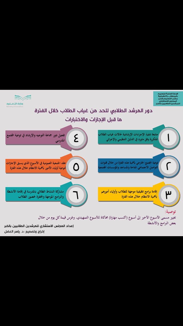 توجـيه وإرشـاد الخبر On Twitter دور المرشد الطلابي للحد من غياب الطلاب