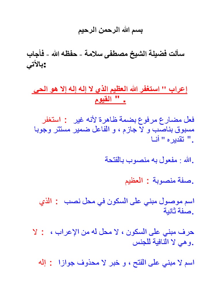إعراب قوله تعالى الله لا إله إلا هو الحي القيوم Youtube