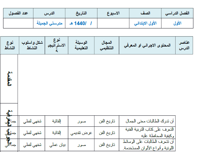 تحضير التربية الفنية للمرحلة الابتدائية 1440